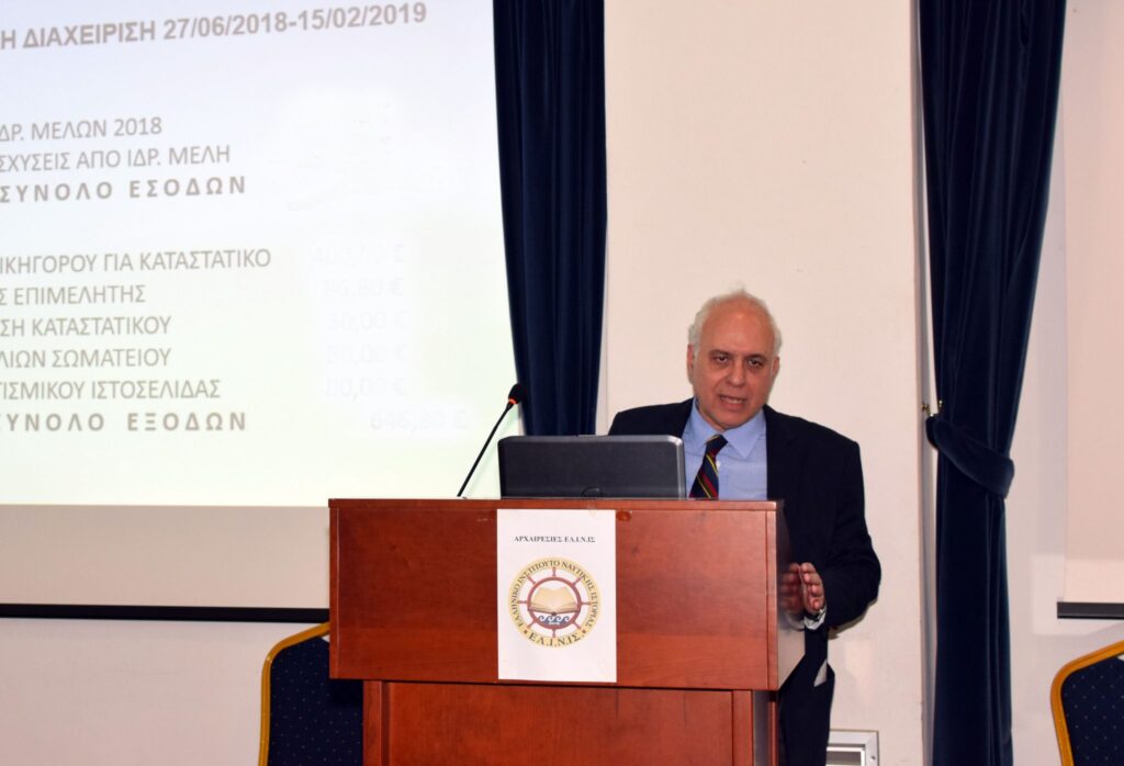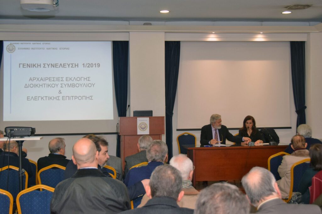 Στίς 17-2-2019 έλαβαν χώρα στην Αίθουσα “Ρήγας Φεραίος” του Πολεμικού Μουσείου Αθηνών οι πρώτες αρχαιρεσίες του Ελληνικού Ινστιτούτου Ναυτικής Ιστορίας. Η προσέλευση των μελών ήταν πολύ μεγάλη, σημάδι ότι η νέα αυτή προσπάθεια ξεκινά δυνατά και με μεγάλες προσδοκίες. Στο πλαίσιο της διαδικασίας πραγματοποιήθηκε απολογισμός έργου από την απερχόμενη Προσωρινή Διοικούσα Επιτροπή, η οποία είχε αναλάβει το έργο της νομικής υλοποίησης της ίδρυσης του ΕΛ.Ι.Ν.ΙΣ., καθώς και τα απαραίτητα πρώτα βήματα της δημοσιοποίησης της προσπάθειας.
