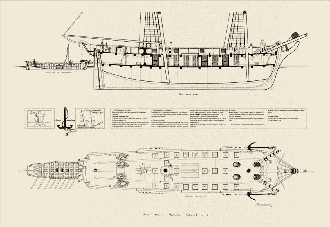 30Η μοναδική φρεγάτα που είχε η Ελλάδα. Είχε όμως κορβέτες, όπως ο «ΑΓΑΜΕΜΝΟΝΑΣ» της Μπουμπουλίνας και ο «ΘΕΜΙΣΤΟΚΛΗΣ» των Τομπάζηδων.
