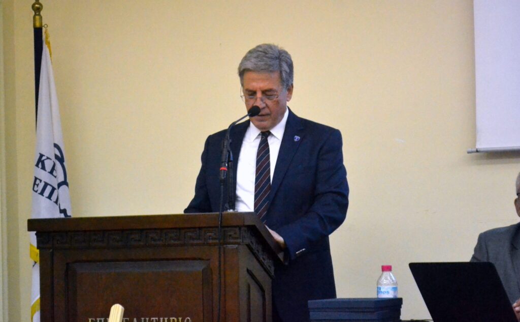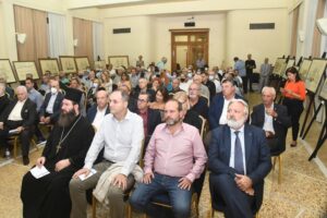 Σύντομο χαιρετισμό απηύθυναν ο Πρόεδρος του παραρτήματος Αντιναύρχος (Ο) ε.α Δημήτιος Μποϊλές Π.Ν., ο Αντιπεριφερειάρχης Π.Ε. Αχαΐας Χαράλαμπος Μπονάνος, ο Βουλευτής Αχαΐας Ιάσων Φωτήλας, ο Βουλευτής Αχαΐας Άγγελος Τσιγκής (με επιστολή λόγω κοινοβουλευτικών υποχρεώσεων) και ο Γενικός Γραμματέας του ΕΛ.Ι.Ν.ΙΣ Αρχιπλοίαρχος ε.α Αριστείδης Καθρέπτας Π.Ν. Επίσης την εκδήλωση τίμησαν με την παρουσία τους εκπρόσωποι των πολιτικών και στρατιωτικών Αρχών καθώς και της Εκκλησίας. Στο τέλος της εκδήλωσης ο υιός του ζωγράφου προσέφερε στην ΕΑΑΝ (Παράρτημα Ν. Δυτ. Ελλάδος) αντίγραφο πίνακα του ζωγράφου που απεικονίζει την Ναυμαχία των Πατρών.
