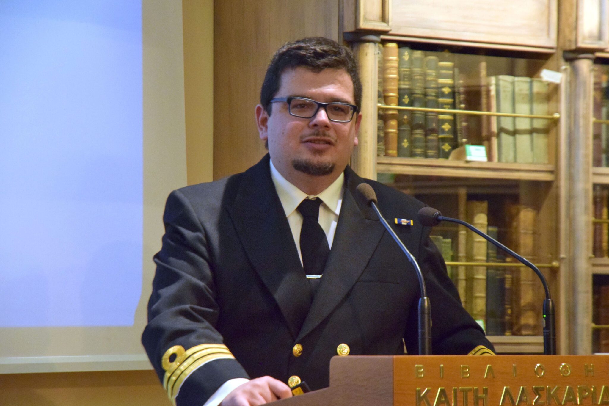 – Καλωσόρισμα από τον Αντιναύαρχο Π.Ν. (ε.α) Κωνσταντίνο Μαζαράκη – Αινιάνα, Επίτιμο Αρχηγό Στόλου, Πρόεδρο ΕΛ.Ι.Ν.ΙΣ.