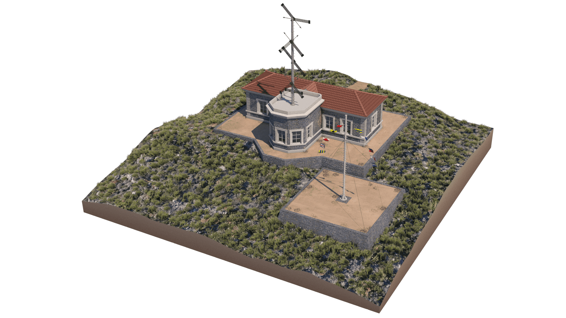 Στη φετινή εορταστική κάρτα του το Ελληνικό Ινστιτούτο Ναυτικής Iστορίας επέλεξε μια ανάλογη με την περίσταση ψηφιακή απεικόνιση του κτηρίου του Σηματοτηλέγραφου Κυθήρων που από τον Φεβρουάριο του 2024 ξεκινήσε το έργο της πληρους (εξωτερικής και εσωτερικής) ψηφιακής αναπαράστασής του, με βάση τα σχέδια του Ακαδημαϊκού κ. Μανόλη Κορρέ.