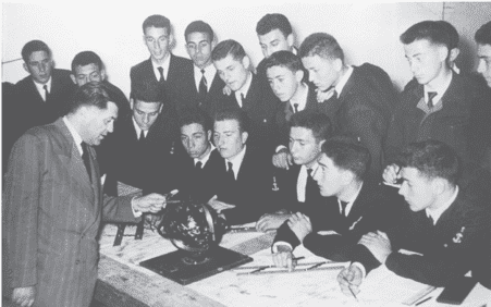 Το διάβα ενός ήρωα πολέμου από τη Σχολή Εμποροπλοιάρχων Ύδρας άφησε το αποτύπωμά του. Εδώ μάθημα Ναυτιλίας, τάξη Β΄,1957.