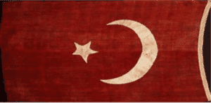 Σύμφωνα με τα αρχεία του ναυτικού μουσείου Ελλάδος, η παραπάνω σημαία δωρήθηκε στο μουσείο, το έτος 1959, από τη θυγατέρα του Ναυάρχου Παύλου Κουντουριώτη, “Δέσποινα Λαμπρινούδη”. Ήταν λάφυρο του πολέμου του 1897. Τη σημαία αφαίρεσε από τις τουρκικές αποθήκες της Σκάλας Λεπτοκαρυάς, άγημα του “ατμοδρόμωνος Αλφειού”, κυβερνήτης του οποίου ήταν ο Πλωτάρχης τότε “Παύλος Κουντουριώτης”.