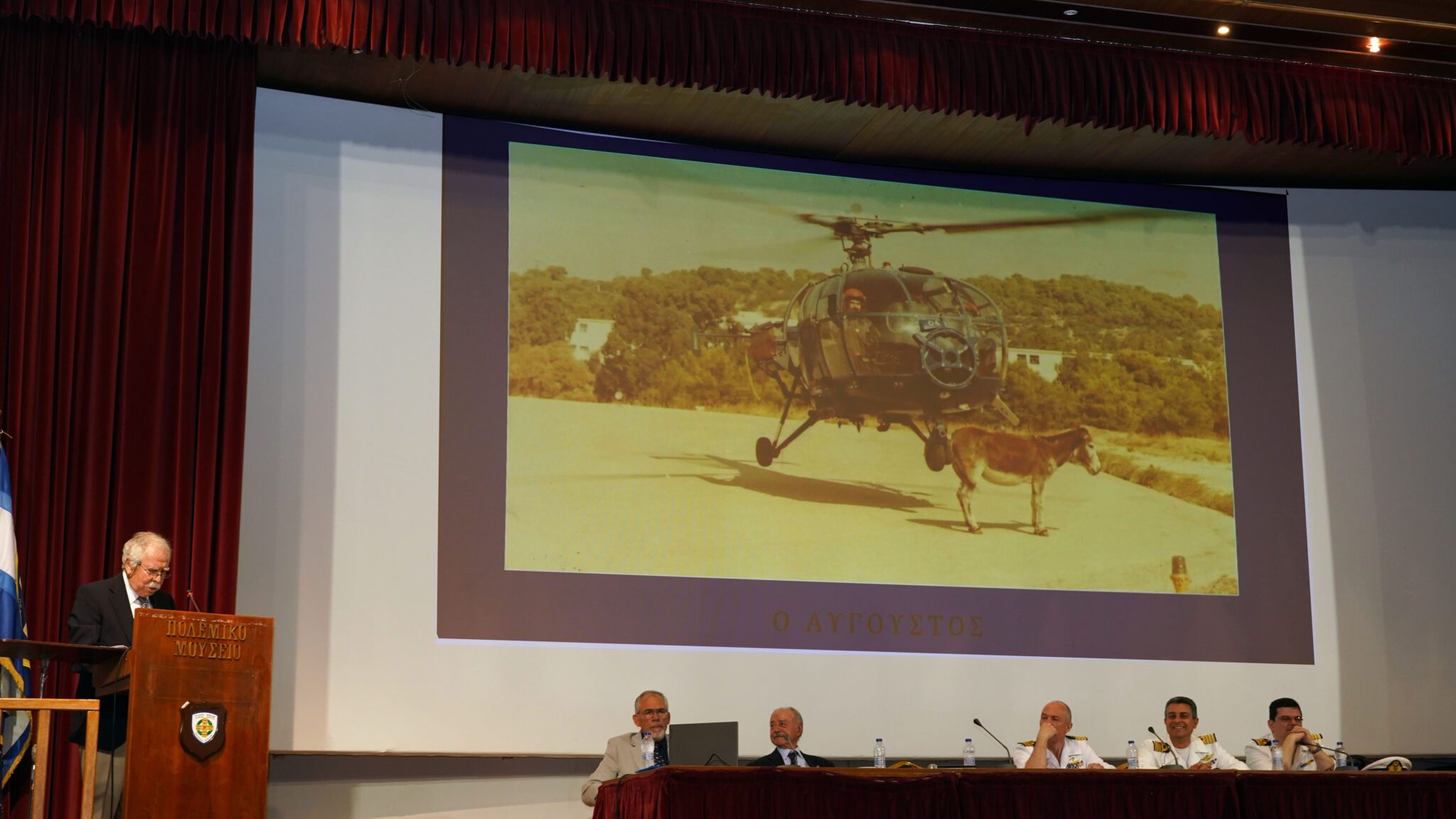 Στην έναρξη της εκδήλωσης ο Πρόεδρος του ΕΛ.Ι.Ν.ΙΣ και επίτιμος Αρχηγός Στόλου Αντιναύαρχος (ε.α.) Κωνσταντίνος Μαζαράκης – Αινιάν καλοσώρισε τους ομιλητές και το κοινό, ενώ στη συνέχεια ο Αρχηγός Στόλου Αντιναύαρχος Πολυχρόνης Κουλούρης, ο αρχαιότερος εν ενεργεία ιπτάμενος του ΠΝ, απηύθυνε χαιρετισμό. Ο κύκλος των αξιόλογων ομιλητών άνοιξε με τον Επιτελή της Υπηρεσίας Ιστορίας Ναυτικού Πλωτάρχη (Ο) Π. Γέροντα, ο οποίος παρουσίασε συνοπτικά την πρώτη περίοδο της Ναυτικής Αεροπορίας μεταξύ 1913 και 1930. Ακολούθησαν ως ομιλητές 2 ιστορικές για το ΠΝ προσωπικότητες: Ο επίτιμος Αρχηγός Στόλου Αντιναύαρχος (ε.α.) Γεώργιος Μπεζεριάνος (ένας εκ των 3 πρώτων χειριστών Ε/Π του ΠΝ και πρώτος Διοικητής του Σμήνους Ελικοπτέρων Ναυτικού) και ο Αντιναύαρχος (ε.α.) Κωνσταντίνος Γκορτζής (ο πρώτος Έλληνας εκπαιδευτής Ελικοπτέρων, με μακρά πορεία ως ιπτάμενος του ΠΝ). Περιέγραψαν με γλαφυρό και εύθυμο τρόπο την Οδύσσεια της επανασυγκρότησης της Ναυτικής Αεροπορίας στην Ελλάδα κυριολεκτικά εκ του μηδενός. Η σύγχρονη εικόνα δόθηκε στη συνέχεια από τον Πλοίαρχο Δ. Kαμάρα (συντονιστή προγραμμάτων ιπταμένων μέσων στη ΓΕΝ/ΔΕΞ) και τον Πλοίαρχο Αθανάσιο Φώσκα (Διοικητή Αεροπορίας Ναυτικού).