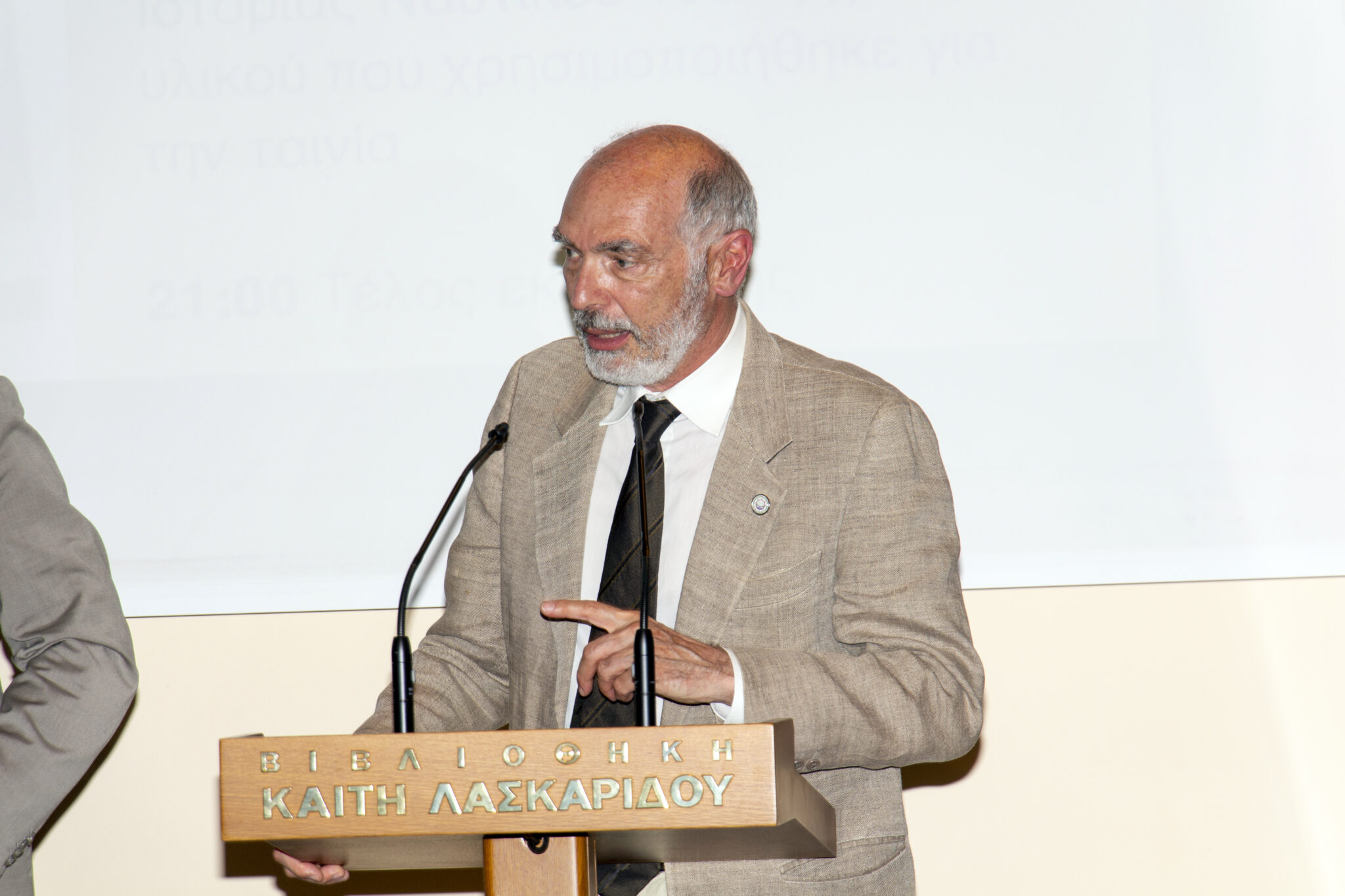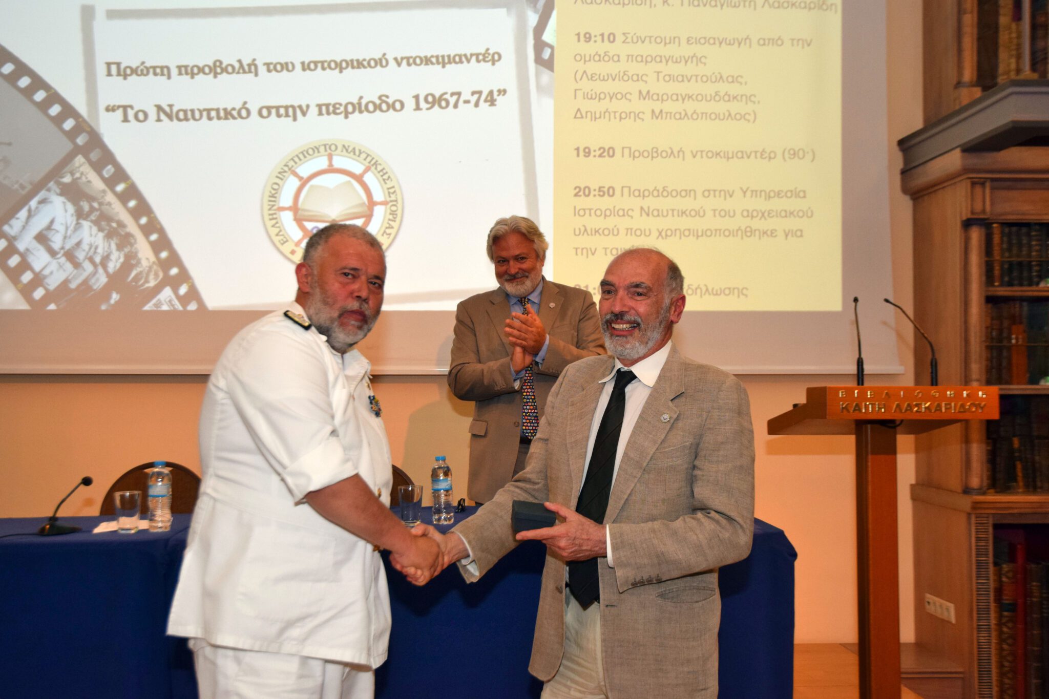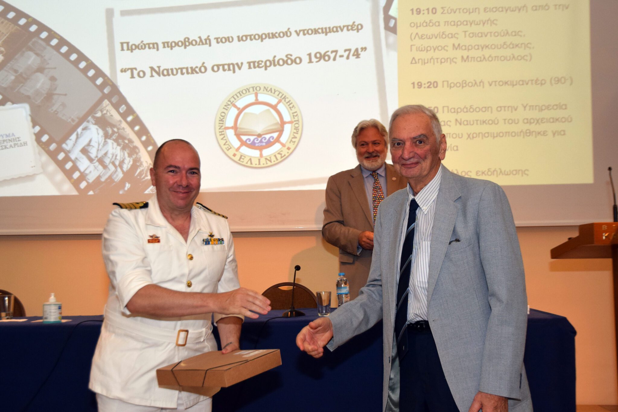 Μετά το τέλος της προβολής του ντοκιμαντέρ ο Πρόεδρος του ΕΛ.ΙΝ.ΙΣ κος Κωνσταντίνος Μαζαράκης – Αινιάν παρέδωσε στον Διευθυντή της Υπηρεσίας Ιστορίας Ναυτικού Πλοίαρχο Ιωάννη Καμπόλη ΠΝ, όλο το υλικό στο οποίο βασίστηκε το ντοκιμαντέρ (12 ώρες συνεντεύξεων καθώς και αρχείο Ημερήσιου Τύπου εποχής που παραχώρησε ευγενικά ο Αντιναύαρχος (ε.α.) Ν. Μανταδάκης).