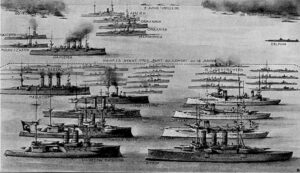 [13] Κυβισμός 27.500 τόνοι, μέγιστη ταχύτητα 22 κόμβοι, οπλισμός: 14 x 305/45, 20 x 152/50, 10 x 76 mm, 5 x 47 mm, 2 x 533 mm TT, πλήρωμα 1267 άνδρες.