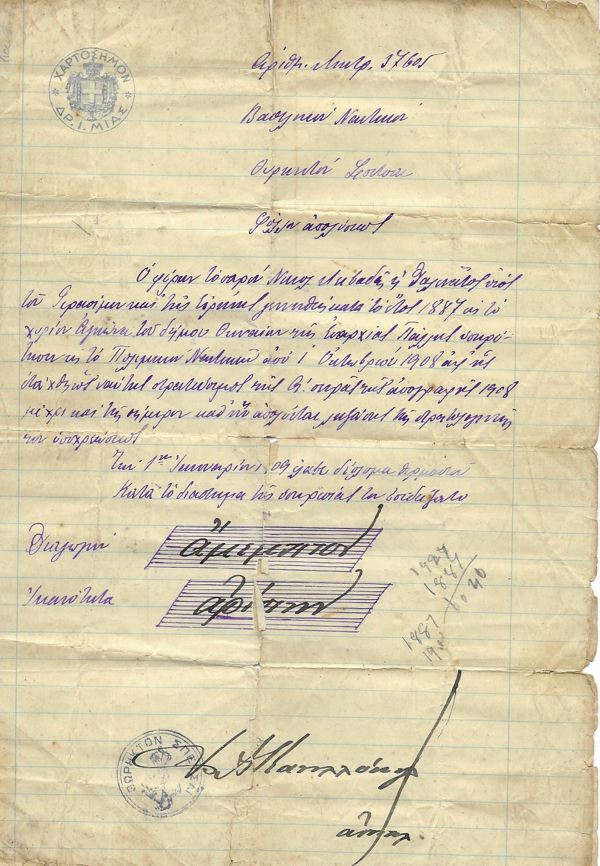 Στην προσπάθειά μας, ως ΕΛ.Ι.Ν.ΙΣ., για τον εντοπισμό και την διάσωση ιστορικών κειμηλίων, συναντούμε κάποιους “μικρούς θησαυρούς” όπως αυτόν που σας παρουσιάζουμε σήμερα. Πρόκειται για ένα άψογα διατηρημένο “Φύλλον Απολύσεως” ναύτη ο οποίος υπηρέτησε στο Θωρηκτό Σπέτσαι την περίοδο 1908-1909. Το έγγραφο είναι χειρόγραφο με ενσφράγιστο χαρτόσημο και σφραγίδα του πλοίου. Το πιο εντυπωσιακό είναι ότι με τον κατάλληλο φωτισμό διακρίνεται ότι είναι γραμμένο επάνω σε ειδικά υδατογραφημένο χαρτί (προφανώς στο πλαίσιο της χαρτοσήμανσης).