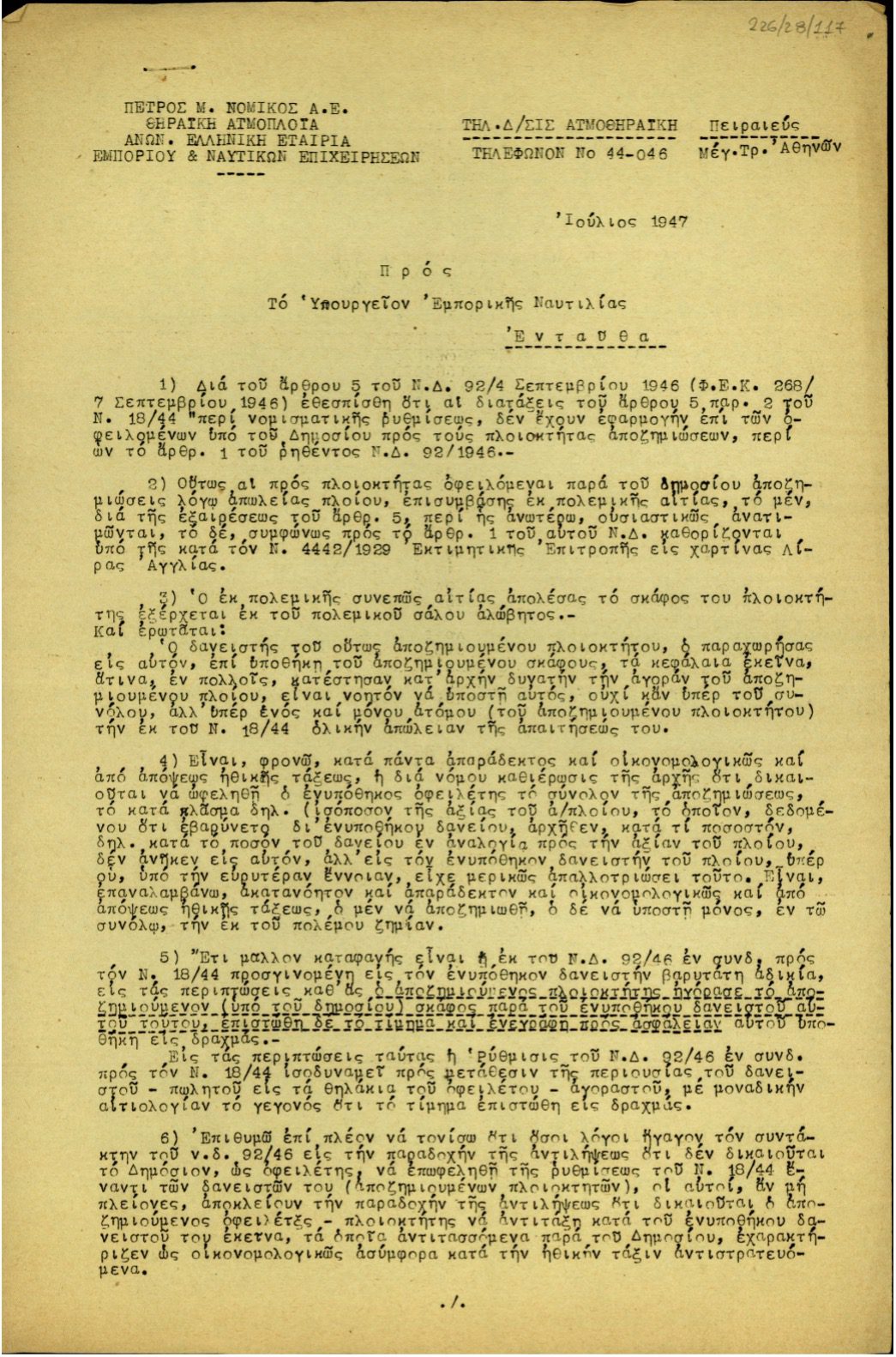Το Ψηφιακό Αρχείο του Εθνικού Ιδρύματος Ερευνών και Μελετών «Ελευθέριος Κ. Βενιζέλος» διαθέτει υλικό για τον Ελευθέριο Βενιζέλο και τη Νεότερη Ελληνική Ιστορία, τμήμα του οποίου άπτεται θεματικές Ναυτικής Ιστορίας (βλ. ενδεικτικά την «Αναφορά της Θηραϊκής Ατμοπλοϊας Πέτρος Μ. Νομικός Α.Ε. προς το Υπουργείο Εμπορικής Ναυτιλίας της Ελλάδας σχετικά με το ζήτημα της αποζημίωσης των βυθισθέντων επιτάκτων πλοίων»).