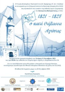 Για τον κατά θάλασσα αγώνα θα μιλήσει η κα Δήμητρα Κουκίου, ιστορικός – Αναπληρώτρια Διευθύντρια του Εθνικού Ιστορικού Μουσείου και μέλος του ΕΛ.Ι.Ν.ΙΣ