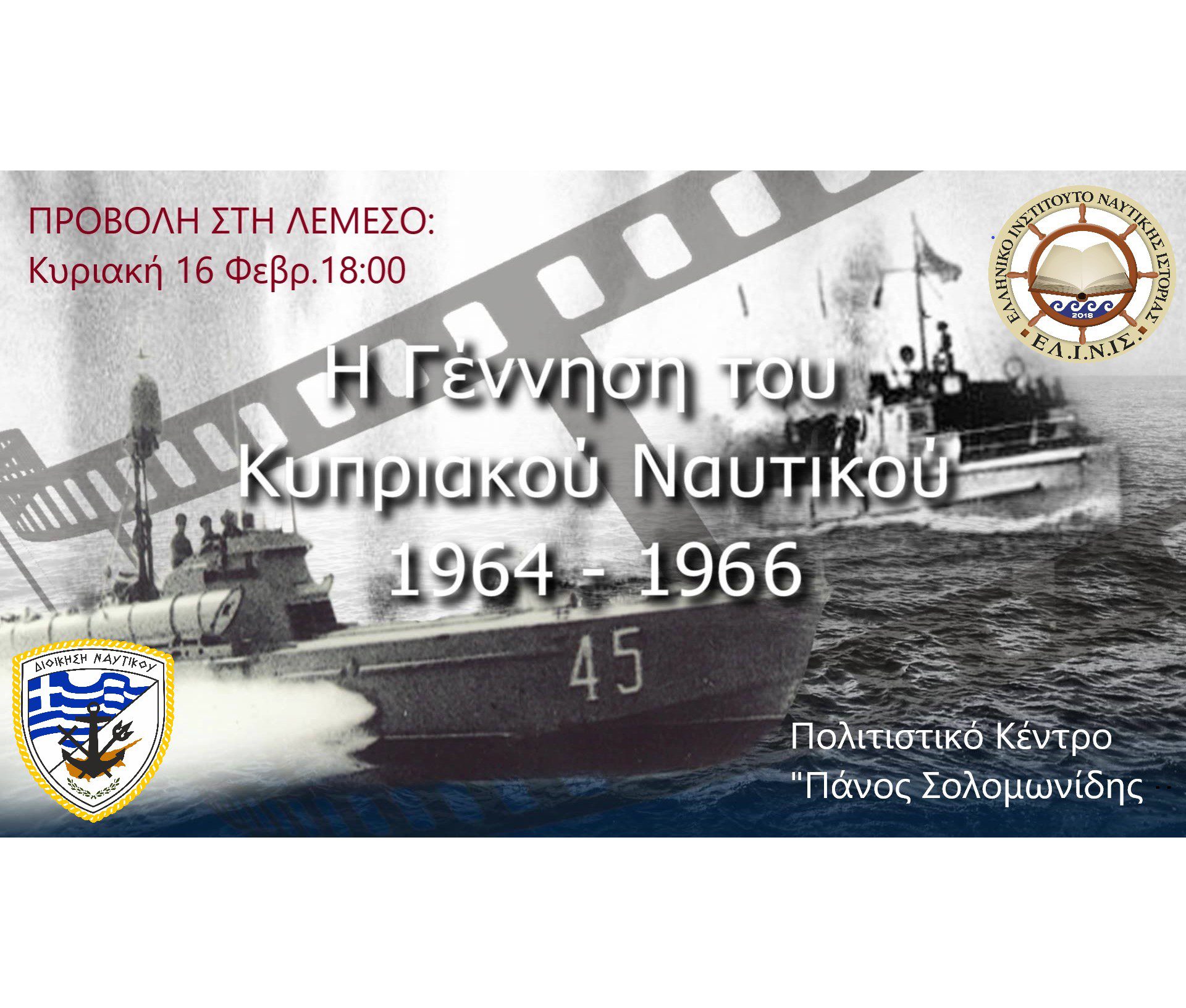 Το Ελληνικό Ινστιτούτο Ναυτικής Ιστορίας έχει τη χαρά και την τιμή να συμμετέχει επίσημα προσκεκλημένο στις ναυτικές εκδηλώσεις με τίτλο "Με το βλέμμα στραμμένο στη θάλασσα", που διοργανώνει η Κυπριακή...