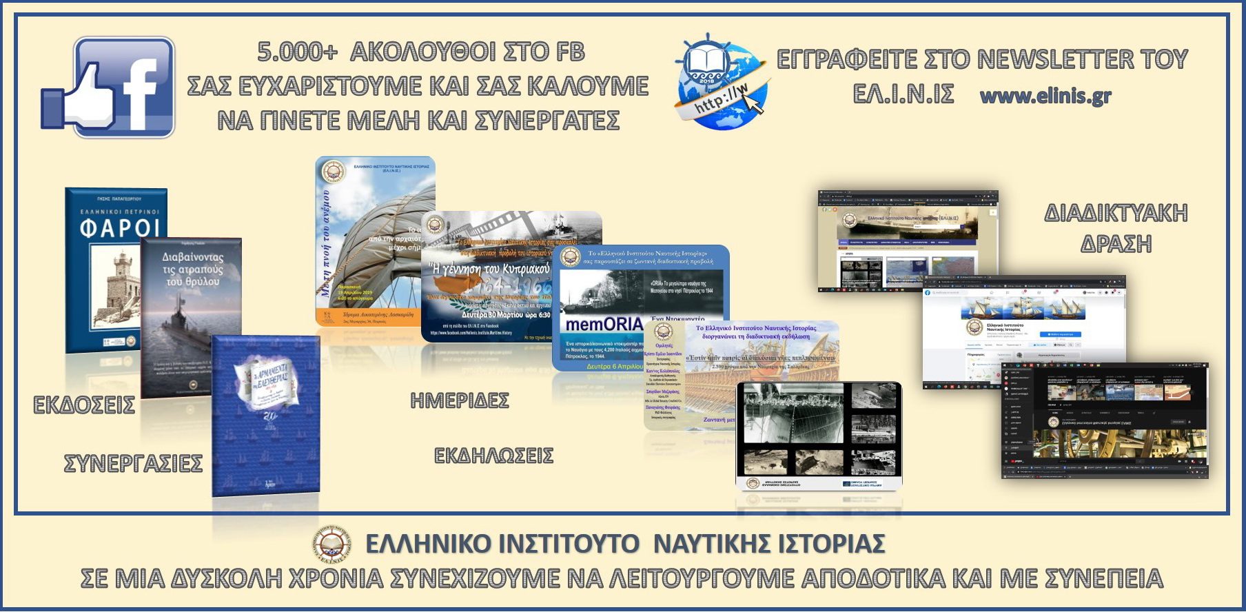 Με αφορμή την πρόσφατη συμπλήρωση 5000 ακολούθων της σελίδας του ΕΛ.Ι.Ν.ΙΣ. στο Facebook δημοσιεύουμε ένα μικρό απολογισμό της δραστηριότητάς μας στη διάρκεια της πανδημίας. Το Ελληνικό Ινστιτούτο Ναυτικής Ιστορίας στα...