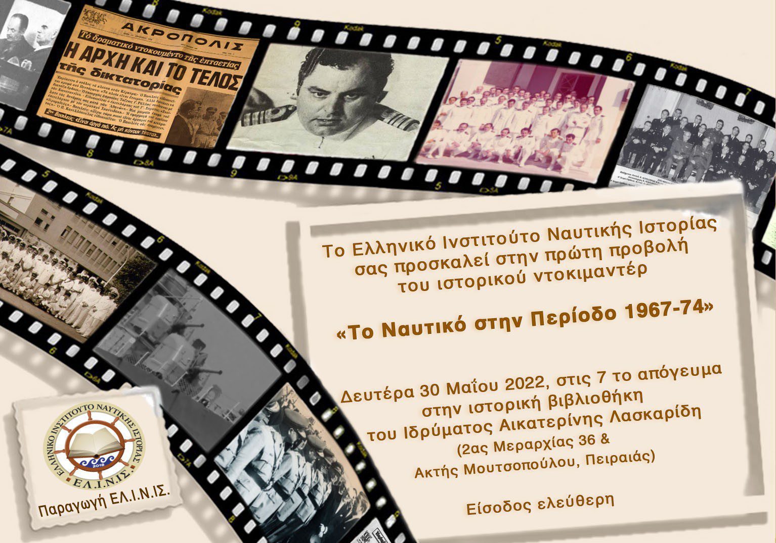 Την Δευτέρα 30 Μαίου 2022 πραγματοποιήθηκε στον υπέροχο (και κατάμεστο από κοινό) χώρο της Ιστορικής Βιβλιοθήκης του Ιδρύματος Αικατερίνης Λασκαρίδη η πρώτη δημόσια προβολή του νέου ντοκιμαντέρ του Ελληνικού Ινστιτούτου...