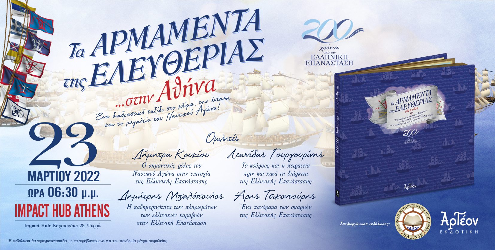 Το Ελληνικό Ινστιτούτο Ναυτικής Ιστορίας (ΕΛ.Ι.Ν.ΙΣ.) και η ΑΡΤΕΟΝ Εκδοτική σας προσκαλούν σε επετειακή εκδήλωση με αφορμή την έκδοση του βιβλίου με τίτλο "Τα Αρμαμέντα της Ελευθερίας" (έκδοση ΑΡΤΕΟΝ με...