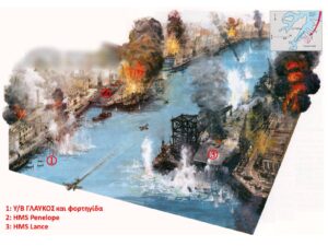 - Το HMS Penelope γίνεται βασικός στόχος και πλήττεται απευθείας από δύο βόμβες.