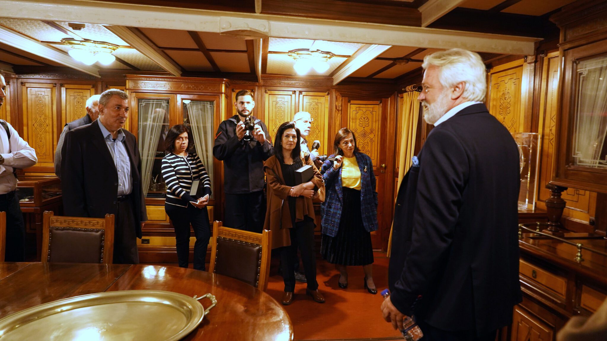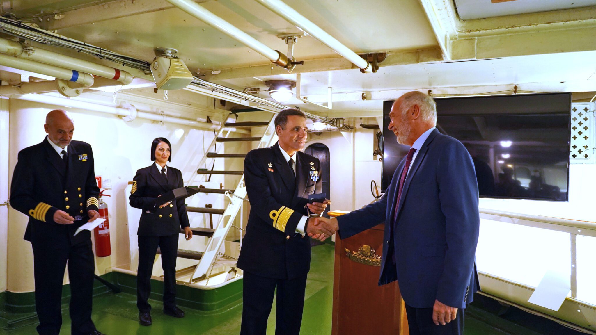 Η τελετή παράδοσης της έκθεσης από το ΕΛ.Ι.Ν.ΙΣ. στο Θ/Κ Αβέρωφ έγινε την Τετάρτη 15 Νοεμβρίου. Παρέστησαν τα Μέλη και οι Φίλοι του ΕΛ.Ι.Ν.ΙΣ. που με την αφορμή αυτή είχαν την ευκαιρία να ξεναγηθούν τόσο στην νέα έκθεση όσο και στα “άδυτα” του πλοίου.