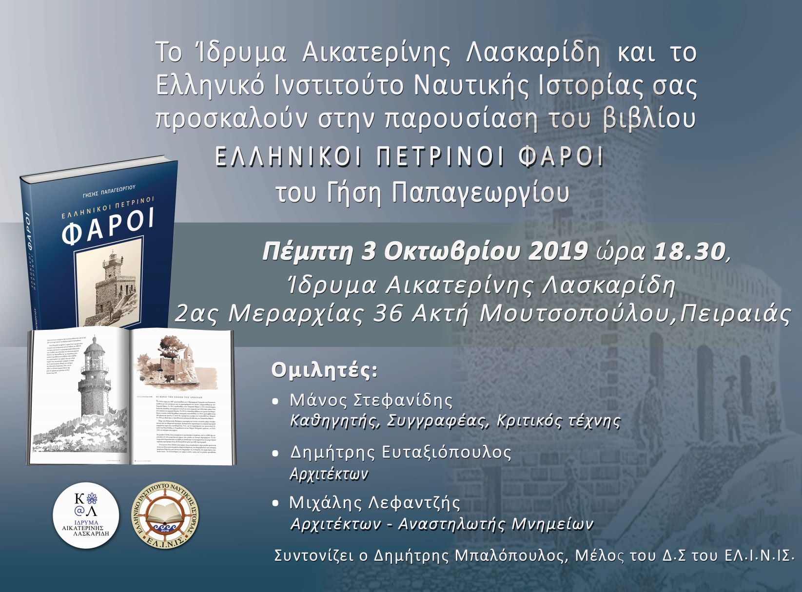 Την Πέμπτη 3 Οκτωβρίου 2019 στις 18:30, στο ‘Ίδρυμα Αικατερίνη Λασκαρίδη (2ας Μεραρχίας 36, Πειραιάς), το Ίδρυμα Αικατερίνης Λασκαρίδη και το Ελληνικό Ινστιτούτο Ναυτικής Ιστορίας παρουσιάζουν στο κοινό την επανέκδοση...