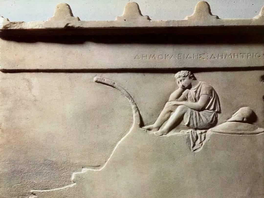 Επιτύμβια στήλη του ναυαγού Δημοκλείδη Εθνικό Αρχαιολογικό Μουσείο Συλλογή Έργων Γλυπτικής, αρ. ευρ. 752 Προέλευση: Άγνωστη Διαστάσεις: Ύψος 0,70 μ., πλάτος 0,45 μ. Χρονολόγηση: 400-375 π.Χ. Χώρος έκθεσης: Έκθεση Γλυπτών,...