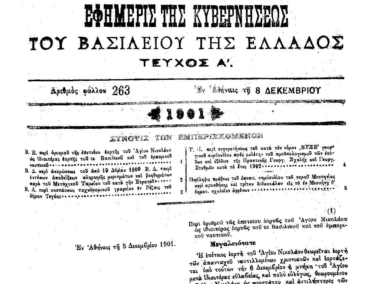 Γνωρίζετε πότε και από ποιόν καθιερώθηκε για πρώτη φορά στην Ελλάδα ο εορτασμός του Ναυτικού παράλληλα με την θρησκευτική εορτή του Αγίου Νικολάου; Από τον Γεώργιο Α' το 1901. Δείτε...