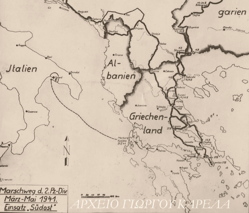 Στις 21.5.1941 ένα μεγάλο μέρος του 2ου συντάγματος τεθωρακισμένων Panzer φορτώθηκαν στο λιμάνι της Πάτρας στα πλοία Marburg και Kybfels με προορισμό το λιμάνι του Τάραντο στην Ιταλία. To Kybfels ήταν ένα φορτηγό πλοίο 7.764 τόνων και ανήκε στην εταιρεία HANSA της Βρέμης. Το Marburg, ελάχιστα μικρότερο 7.564 τόνων είχε ναυπηγηθεί το 1928 με το όνομα Saale για λογαριασμό της εταιρείας North German LLoyd. Είχε προηγηθεί στις 18 Μαΐου 41 η μεταφορά από Πάτρα για Τάραντο των πιο βαριών όπλων και τανκ της μεραρχίας με νηοπομπή που αποτελούσαν εκτός από τα 2 γερμανικά μεταγωγικά και το ιταλικό LAURA C. Επέστρεψαν στην Πάτρα για να φορτώσουν τα υπόλοιπα και λιγότερο βαριά οχήματα της μεραρχίας.
