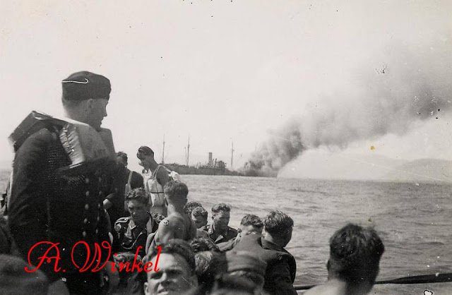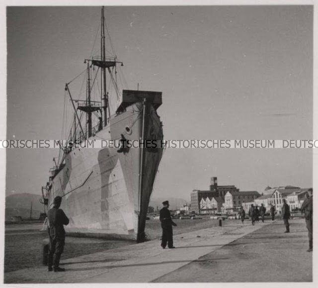 Αρχικά θεωρήθηκε ότι επρόκειτο για επίθεση σε ναυτικούς στόχους από τις δυνάμεις του Άξονα τον Απρίλιο του 1941 κατά τη διάρκεια της εισβολής στην Ελλάδα. Αν και η σιλουέτα του πλοίου ήταν αρκετά ευδιάκριτη η ταυτοποίηση φάνταζε αδύνατη. Τόσο και τόσα πλοία βομβαρδίστηκαν κατά τη διάρκεια της εισβολής, αρκετά βυθίστηκαν, άλλα διέφυγαν. Αυτό που κέντρισε το ενδιαφέρον μου ήταν ότι το πλοίο ήταν ένα πολύ μεγάλο εμπορικό (θα μπορούσε να το υπολογιστεί γύρω στους 8.000 τόνους) βαμμένο με χρώματα καμουφλάζ και 4 άλμπουρα.